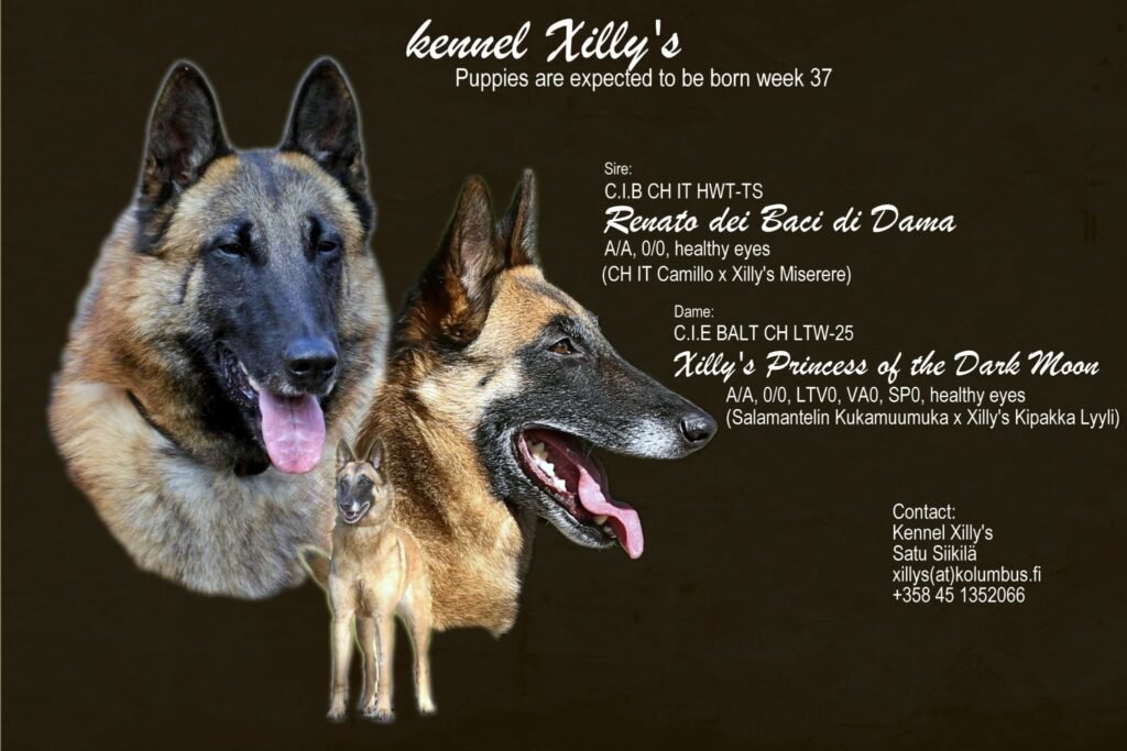 E’ attesa in Finlandia, presso l’Allevamento XILLY’S KENNEL della “storica” Allevatrice Satu Siikila, la nascita di una cucciolata malinois, intorno alla per la 37esima settimana, figli del nostro