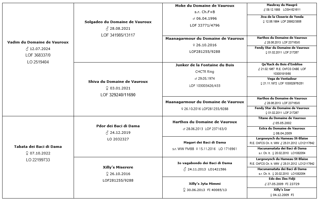 (SOLGADEO DU DOMAINE DE VAUROUX x SHIVA DU DOMAINE DE VAUROUX)