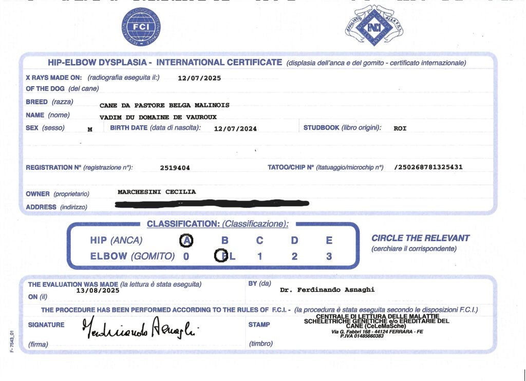 La notizia che aspettavamo ora รจ ufficiale!!! Risultati RX ufficiali del nostro splendido VADIM DU DOMAINE DE VAUROUX Grazie Evy Vauroux Monnereau